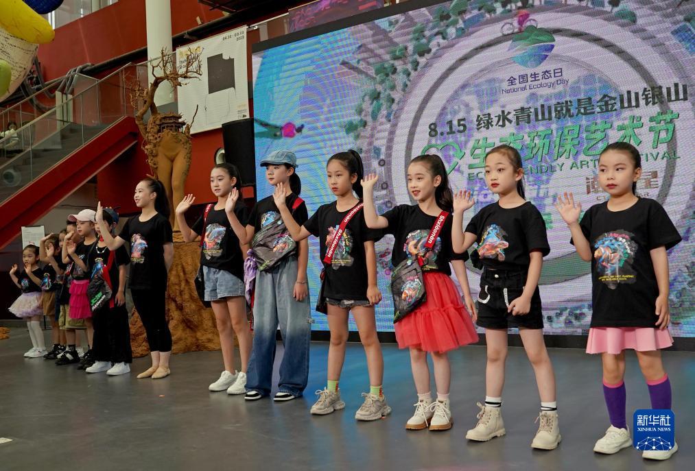8月15攤位設計日,互動裝置小模特在藝術節開幕式上展示以海洋生物多樣沈浸式體驗性保護為主題啟動儀式的服裝。